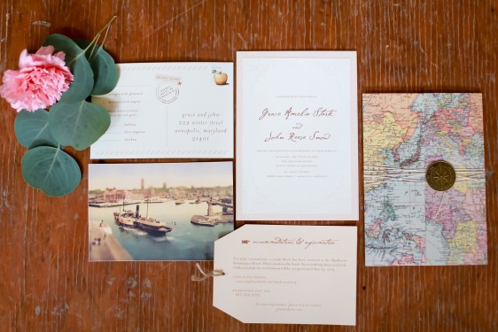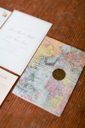 We wanted to share a few of our favorite photos (by the amazingly talented Sarah Goodwin) from the Old World Travel shoot we worked on recently- we just love doing shoots like this! Haley (who did the coordination and the lovely, lovely florals) and Sarah got in touch with us awhile ago about doing the papergoods, and we were so excited to sign on when they told us about the theme. We had so much fun putting together the paper for this shoot- an invitation folder made out of a printed map with a compass charm closure, accordion fold menus with a wax seal detail, baggage tag escort cards- all with the vintage travel feel.
