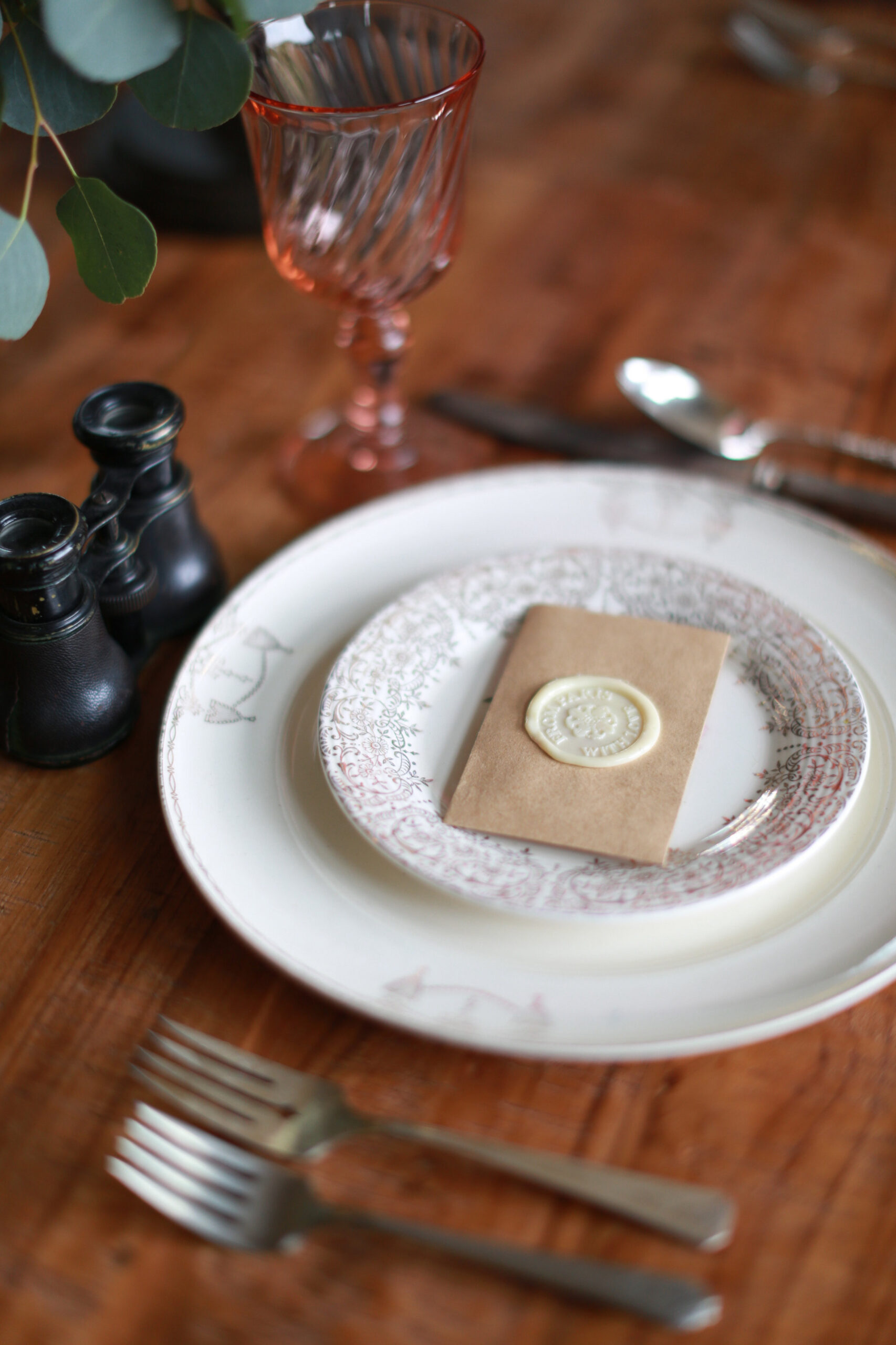 We wanted to share a few of our favorite photos (by the amazingly talented Sarah Goodwin) from the Old World Travel shoot we worked on recently- we just love doing shoots like this! Haley (who did the coordination and the lovely, lovely florals) and Sarah got in touch with us awhile ago about doing the papergoods, and we were so excited to sign on when they told us about the theme. We had so much fun putting together the paper for this shoot- an invitation folder made out of a printed map with a compass charm closure, accordion fold menus with a wax seal detail, baggage tag escort cards- all with the vintage travel feel.